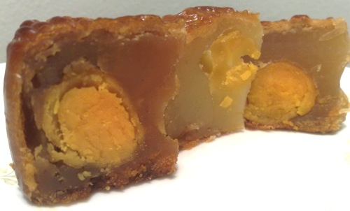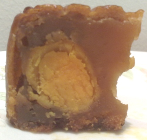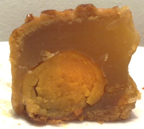 The yolk in East Ocean’s mooncake had the strongest smell of ammonia and was hard in the centre. (And note that black-greenish discolouration of the yolk.) The yolks in the mooncakes from Hong Kong were much better, more creamy. However, Wing Wah’s was a bit more moist.
