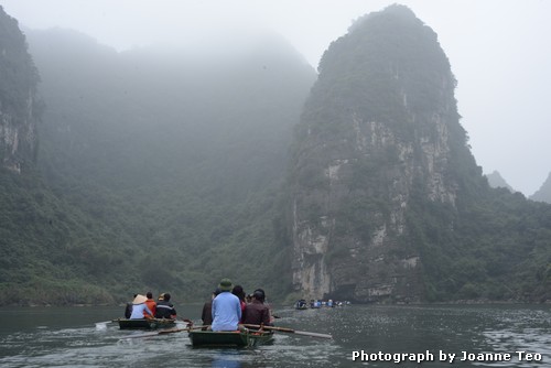 I chose to visit Trang An over Tam Coc as supposedly, Tam Coc is too crowded, with too many vendors hassling you to buy stuff from them. And later, when I went to a place to take the boats in Tam Coc, I also saw motorised boats plying the river. If there’s one thing not to like about Trang An is that the early and end sections are right next to the road. It’s run very organised. Whereas Tam Coc looks more remote because of the padi fields.