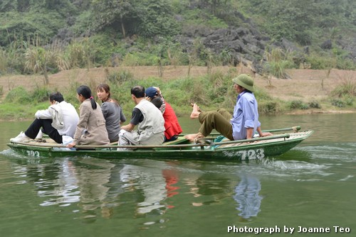 When you first start off at Trang An, it feels like a cattle market with all the Vietnamese jabbering on. 4 passengers make one boat, but 4 more Vietnamese joined my boat, making it 5 people. They were to talk almost the entire time. Still, between the sentences, I could still heard just how quiet the place is. And to see mountain goats on the slopes of these limestone rock and to hear birds singing.