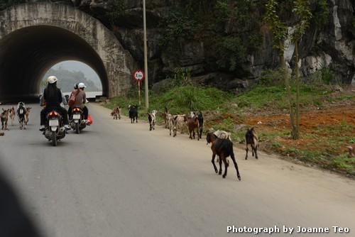 Off we were again, but when I smelt meat grilling. I asked the rider to stop. He told me it was grilled goat. They like eating goat out here in Ninh Binh. Since it was 1230, I decided to stop.