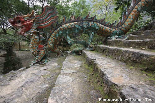 The rower took us through some 6 grottoes and 4-5 pagoda / temples. I lost count. The whole trip took about 3 hours. It started to drizzle a really fine rain toward the end.