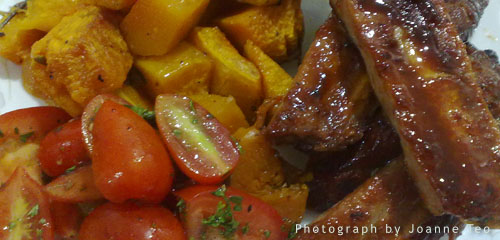 I was going to attempt Salmon with Orange Sauce, Sweet Potato and Tomato Cucumber Salad. The last one I threw in ’cause I thought there was no veg.