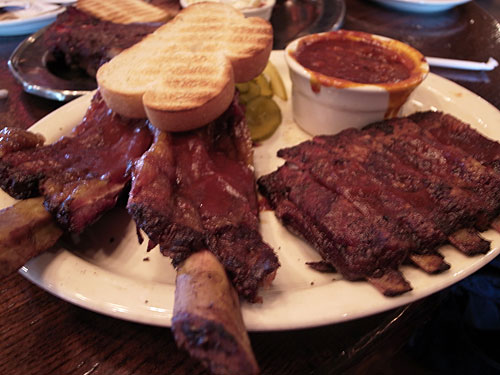We ate at Jack Stack Barbecue which was very good. We had beef ribs, lamb ribs, crown ribs. All were moist, had a good bite, not all stringy and falling apart.